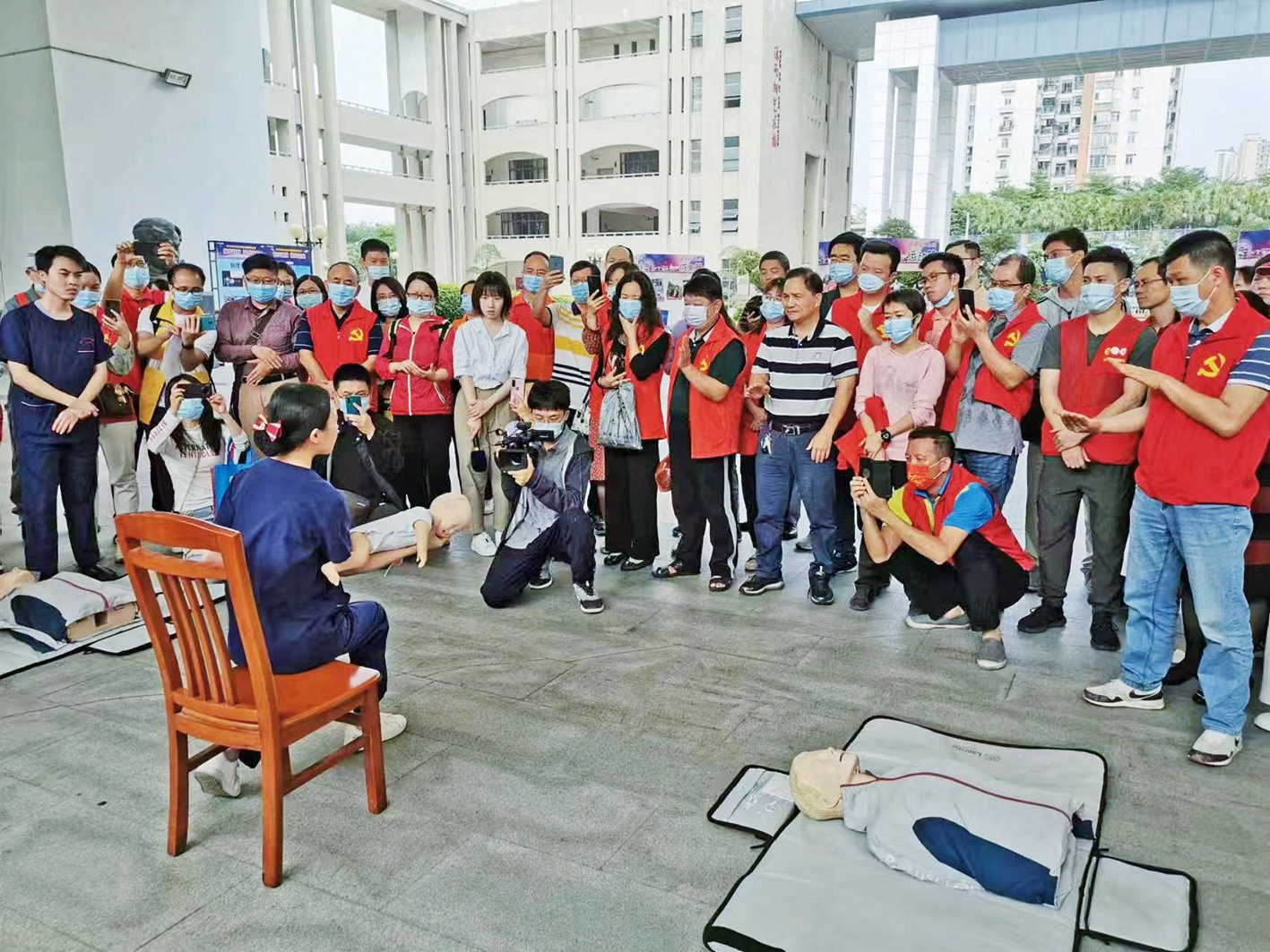 ▲急诊科专家进学校为老师和志愿者进行儿童意外伤害防治教育和急救技能培训