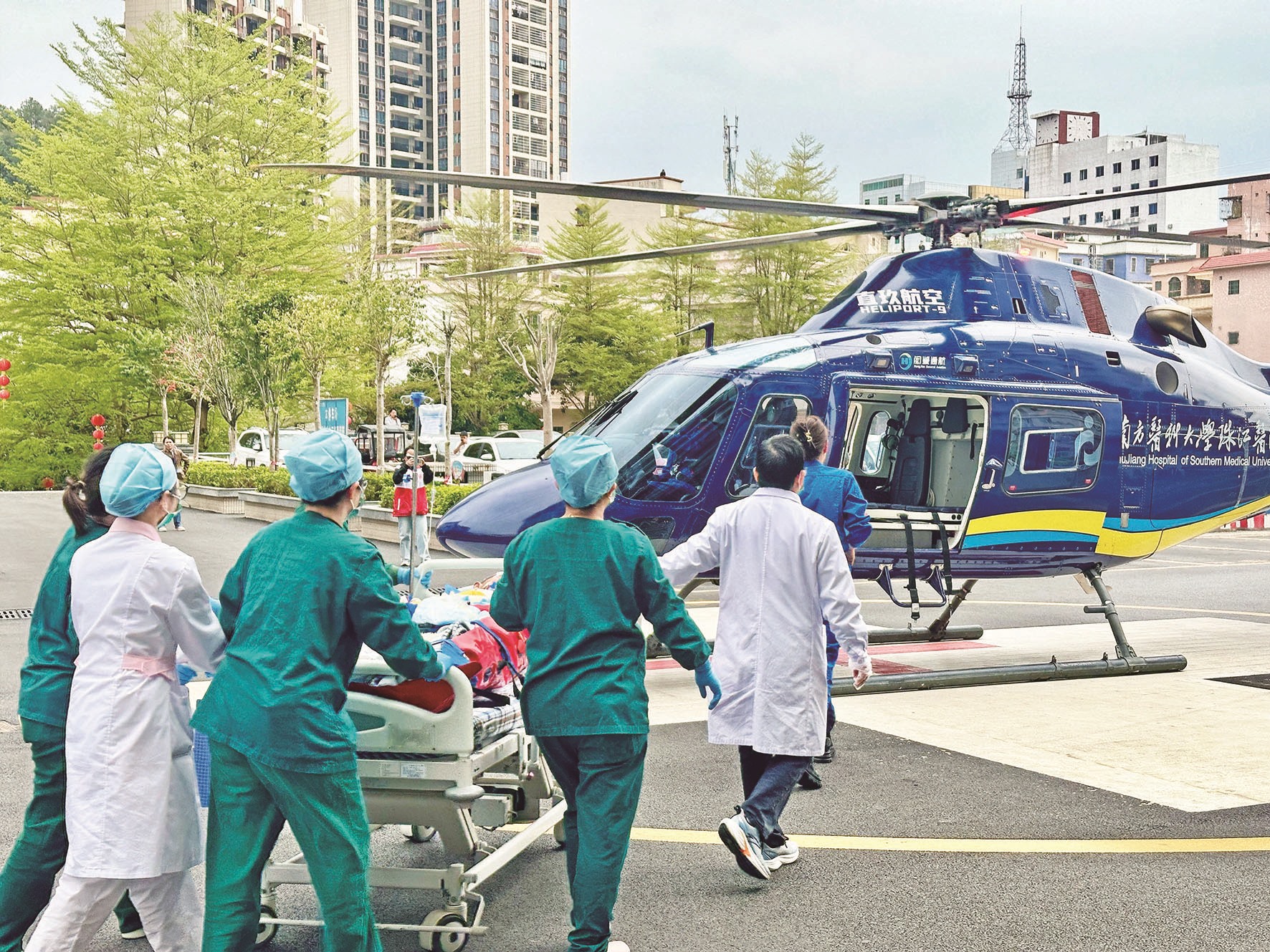 肇庆讯 近日,广宁县人民医院(南方医科大学珠江医院广宁医院)启用医疗直升机,将一名脑出血、依靠有创呼吸机支持生命的危重患者安全转运至南方医科大学珠江医院本部,且此次救援仅用39分钟。从病房到机舱,医护人员无缝衔接,全程守护患者呼吸循环稳定。